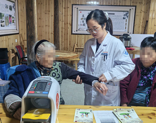 杨蕾把村民的健康放在心上,主动扛起医疗设备,翻山越岭、进村入户,开展健康宣教和义诊服务。每到一个村落,她都耐心为村民测量血压、血糖,详细解答健康疑问,普及慢性病管理、日常保健等知识,用通俗易懂的语言打破健康认知壁垒。