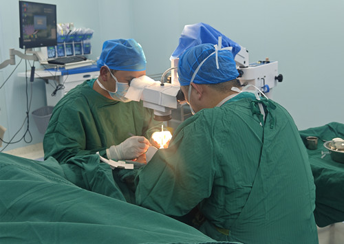 他立即与患者及家属充分沟通手术方案,在获得理解与同意后,精准制定手术计划,一场指尖上的“乾坤大挪移”正式展开。手术中,曾水龙医生在显微镜下精细操作,既要完成环指断指与中指近端的血管、神经、肌腱吻合,还要同步处理环指中节骨折复位内固定、人工真皮修复及小指伸指功能重建等多项操作。显微外科手术对精度要求极高,需吻合直径仅0.3毫米左右的血管,堪比“在针尖上跳舞”。