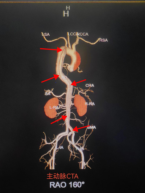 情况危急,患者随时可能因血管破裂猝死。戴炎栋不敢有丝毫迟疑,立即启动危急值报告程序,第一时间上报“夹层动脉瘤?”的可疑诊断,同时迅速与主管医生沟通,建议立即完善胸腹主动脉CT血管造影检查以明确诊断。在医院各科室的高效配合下,20时56分,患者顺利接受胸腹主动脉CTA检查。而检查结果让所有人都倒吸一口凉气:患者的夹层动脉瘤并非局限于腹部,而是从升主动脉一路延伸至髂动脉,贯穿整个胸腹盆腔,如此大范围的夹层动脉瘤在临床上极为少见,病情凶险程度远超预期。