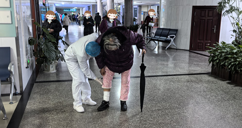 一位老婆婆独自来院就医换药,步履蹒跚、身形不稳,只能紧紧攥着雨伞当作拐杖,艰难地在门诊穿梭。门诊护士发现后,立刻快步上前搀扶,细心为老人拉好凌乱的裤脚,生怕她绊倒受伤。随后,医务人员又主动帮忙取好药品,全程搀扶着老人,耐心引导至急诊室,贴心协助她做好输液准备,用一言一行化解老人独自就医的无助,让就医之路满是暖意。