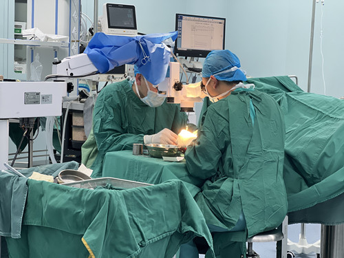 傍晚6点,手术正式开始。手术室的灯光彻夜通明,曾水龙医生和丁泽锋医生坐在高倍显微镜前,凝神聚力、精细操作。四指离断意味着需要同时吻合数十根直径仅0.5-1.5毫米的血管和神经,每一针缝合都容不得丝毫偏差,稍有不慎就可能导致血管痉挛、血栓形成,让此前的努力前功尽弃。