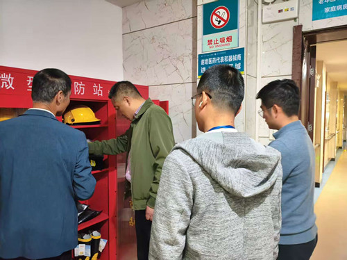 本次检查由医院党委书记、院长章雪峰亲自带队,相关职能科室负责人陪同参与。检查组一行深入医院门急诊、住院部、危化品储存区等重点区域和重要场所,围绕消防安全、设备运行安全、危化品管理、应急保障等方面进行了全面细致的排查。